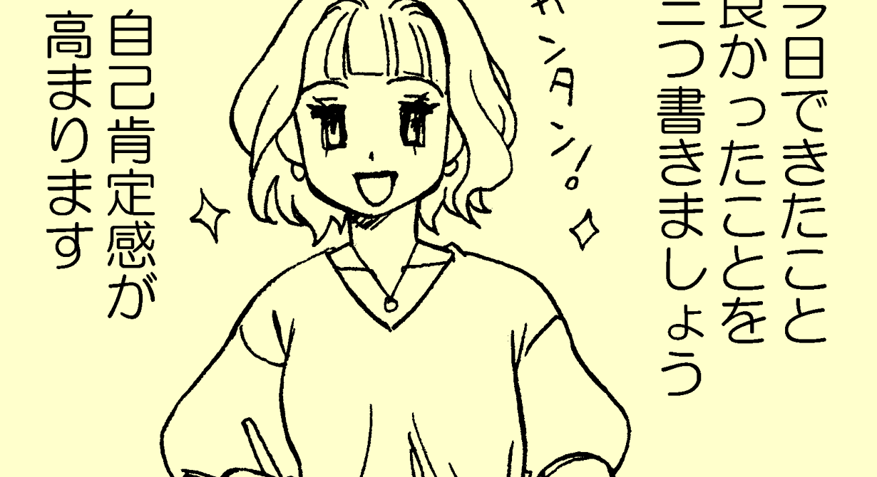 ホメ療法とは、その名の通り「今日できたこと、良かったことを三つ書く」ことにより、自己肯定感を高める効果が期待できるものです。ウェブ検索をかけると、簡単に実践できて前向きな気持ちになれるということで、メンタルが疲れた人にお勧めされています。