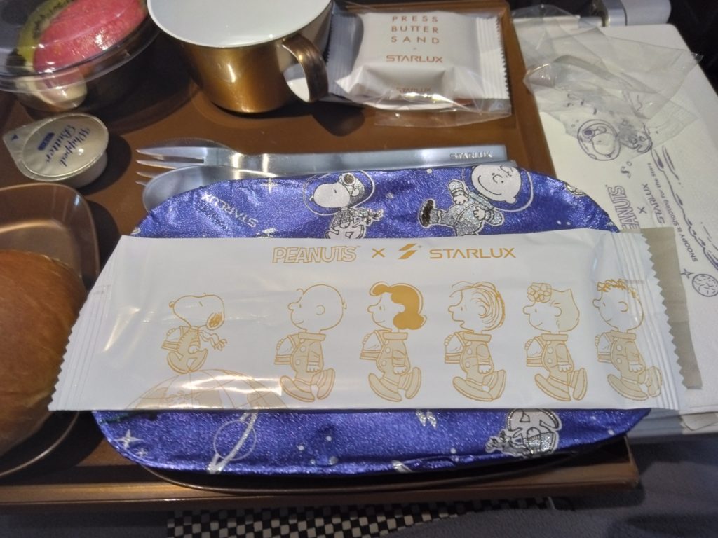 2025年末までスヌーピーとコラボしていたスターラックス航空。ネームタグや紙のチケットなどなど、スヌーピーでいっぱい! もちろん機内食も以下の通り。