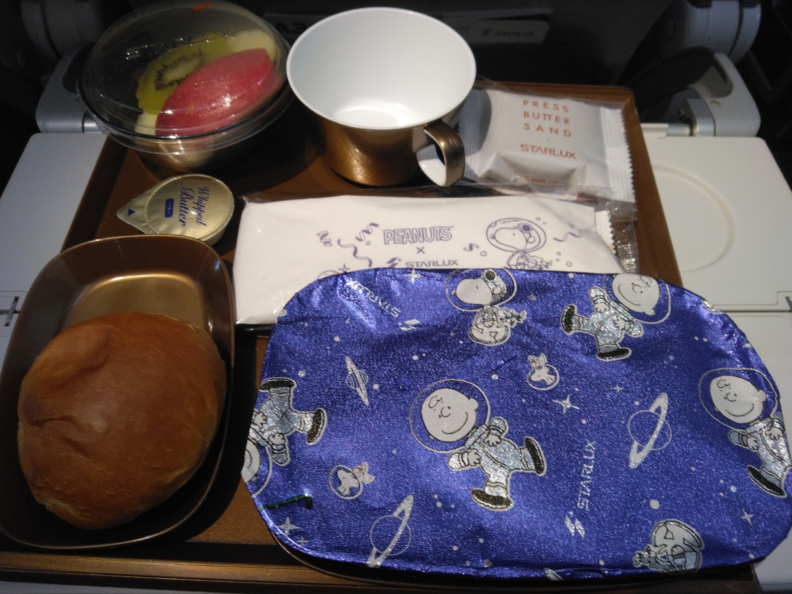 2025年末までスヌーピーとコラボしていたスターラックス航空。ネームタグや紙のチケットなどなど、スヌーピーでいっぱい! もちろん機内食も以下の通り。